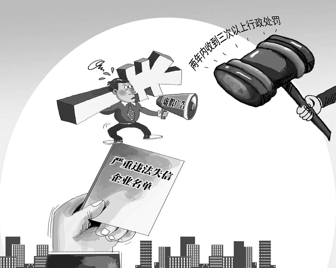 因发布虚假广告两年内受到三次以上行政处罚的,将被列入严重违法失信企业名单。
